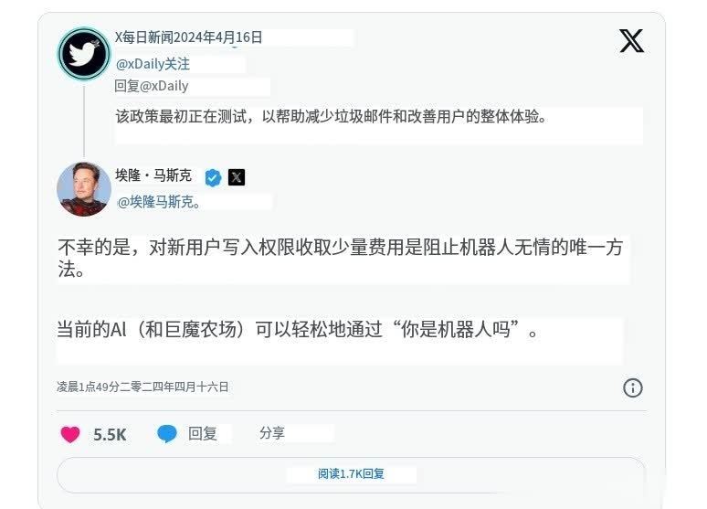 但由于机器人生产的内容确实影响了真实用户的体验,所以马斯克现在正在探索让推特用户支付会员费以阻止机器人内容(估计在他眼里机器人内容就像广告一样烦人)。